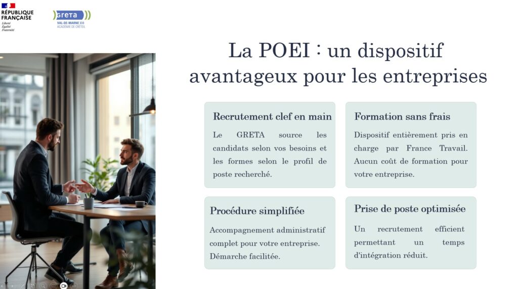 Le dispositif de Préparation Opérationnelle à l’Emploi Individuelle est un mécanisme de financement permettant de former des demandeurs d’emploi afin qu’ils acquièrent des compétences spécifiques requises pour un poste avant leur embauche.